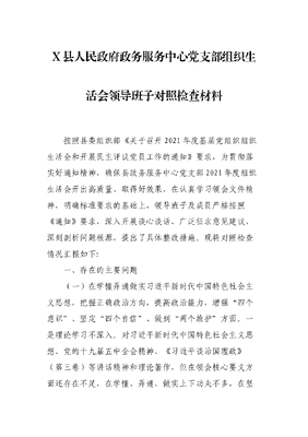 X县人民政府政务服务中心党支部组织生活会领导班子对照检查材料.docx