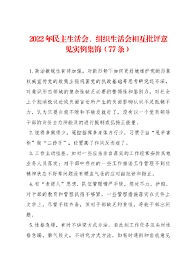 (77条)2022年民主生活会、组织生活会相互批评意见实例集锦.docx