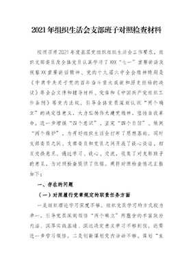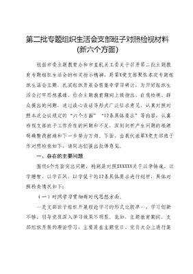 第二批专题组织生活会支部班子对照检视材料(新六个方面).docx