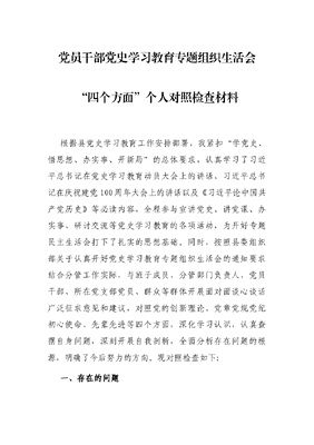 党员干部党史学习教育专题组织生活会“四个方面”个人对照检查材料.docx