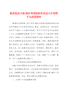 机关党员干部2022年度组织生活会六个对照个人检查材料.docx