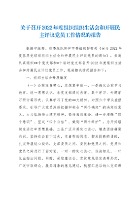 关于召开2022年度组织组织生活会和开展民主评议党员工作情况的报告.docx