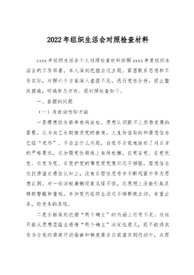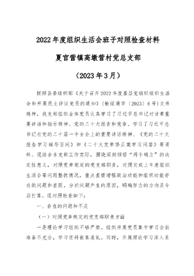 村2022年度组织生活会班子对照检查材料提纲.docx
