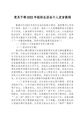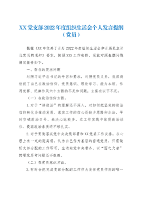 XX党支部2022年度组织生活会个人发言提纲(党员).docx