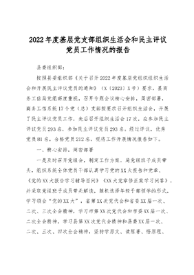 2022年度基层党支部组织生活会和民主评议党员工作情况的报告.docx