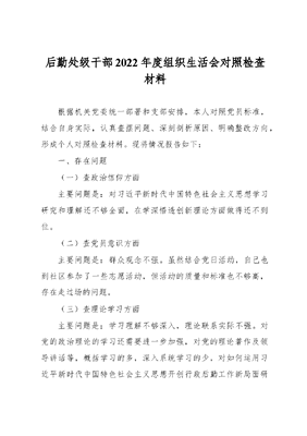 后勤处级干部2022年度组织生活会对照检查材料.docx