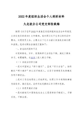 2022年度组织生活会个人剖析材料(分公司党支部).doc