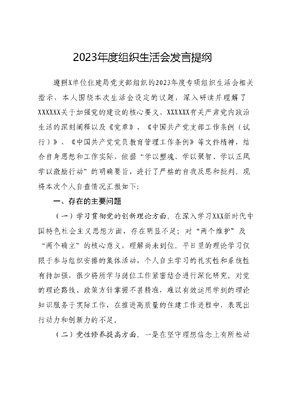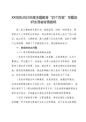 XX党员2023年度主题教育“四个方面”专题组织生活会发言提纲.docx