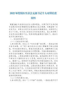 2022年度支部书记组织生活会个人对照检查材料.docx