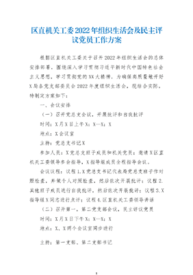 区直机关工委2022年组织生活会及民主评议党员工作方案.docx