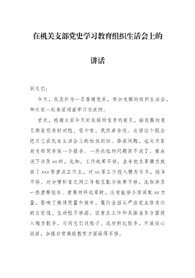 在机关支部党史学习教育组织生活会上的讲话.docx