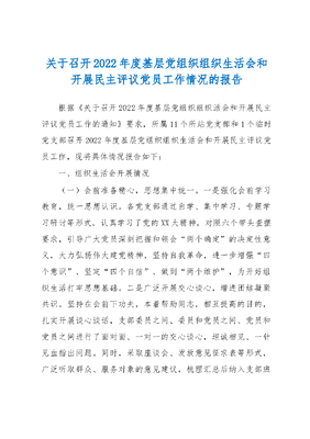 关于召开2022年度基层党组织组织生活会和开展民主评议党员工作情况的报告.docx