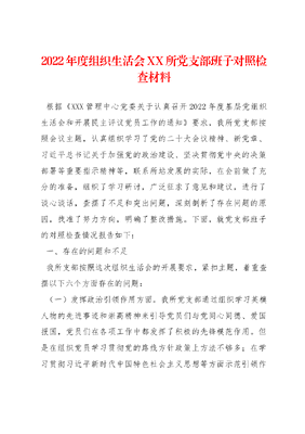 2022年度组织生活会XX所党支部班子对照检查材料.docx