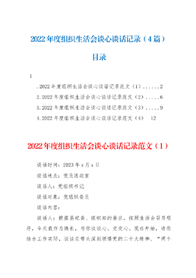 (4篇)2022年度组织生活会谈心谈话记录.docx