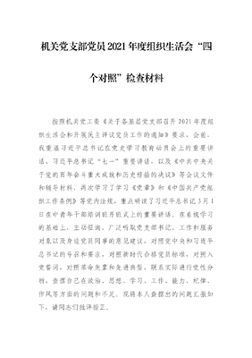机关党支部党员2021年度组织生活会“四个对照”检查材料.docx