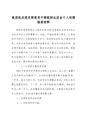 政府机关党支部党员干部组织生活会个人对照检查材料.docx