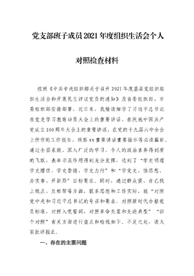 党支部班子成员2021年度组织生活会个人对照检查材料.docx