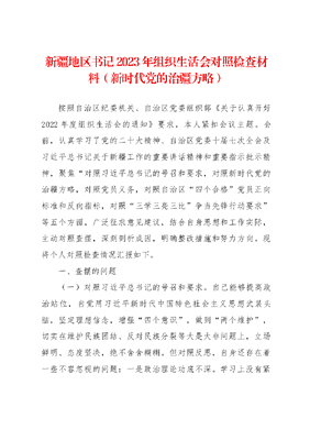 新疆地区书记2023年组织生活会对照检查材料(新时代党的治疆方略).docx