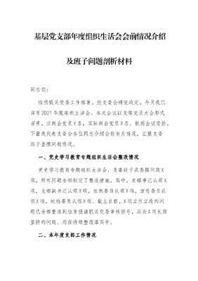 基层党支部年度组织生活会会前情况介绍及班子问题剖析材料.docx