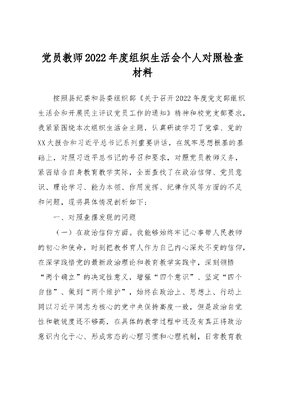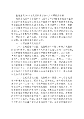 教师党员2022年度组织生活会个人对照检查材料.docx