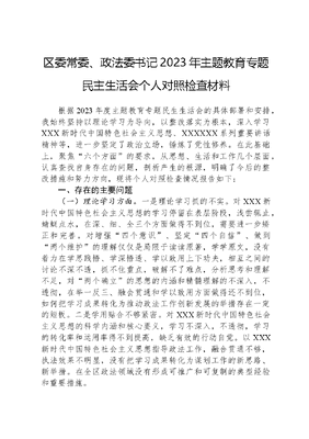 区委常委、政法委书记2023年主题教育专题民主生活会个人对照检查材料.docx