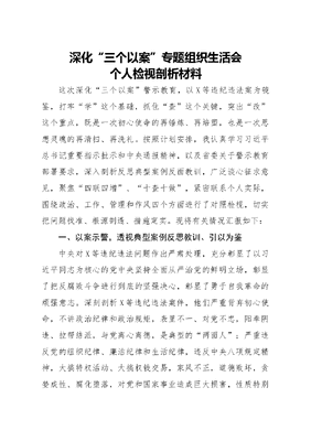 深化“三个以案”专题组织生活会个人检视剖析材料.docx