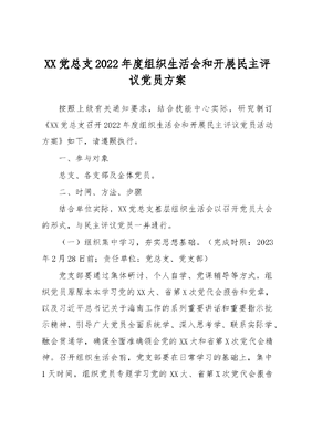 XX党总支2022年度组织生活会和开展民主评议党员方案.docx