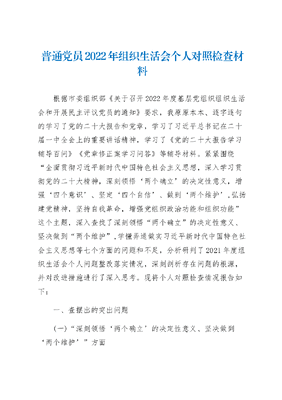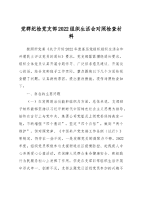 党群纪检党支部2022组织生活会对照检查材料.docx