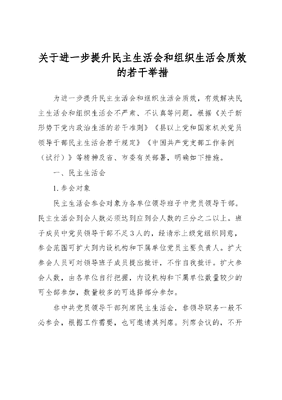 关于进一步提升民主生活会和组织生活会质效的若干举措.docx