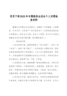 党员干部2023年专题组织生活会个人对照检查材料.docx