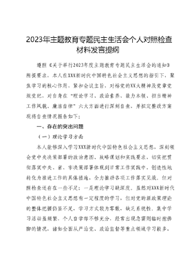 2023年主题教育专题民主生活会个人对照检查材料发言提纲01.docx