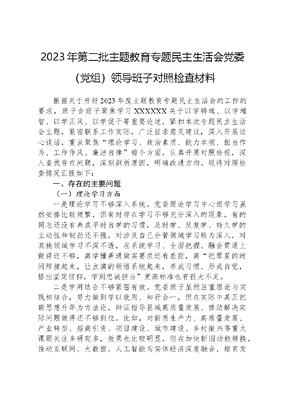 2023年第二批主题教育专题民主生活会党委(党组)领导班子对照检查材料.docx