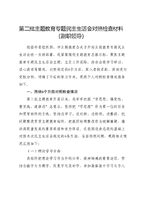 第二批主题教育专题民主生活会对照检查材料(副职领导).docx