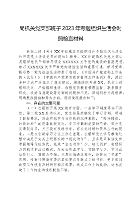 局机关党支部班子2023年专题组织生活会对照检查材料.docx