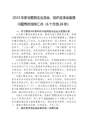 2023年度专题民主生活会、组织生活会查摆问题整改措施汇总(6个方面28条).docx