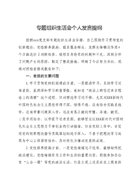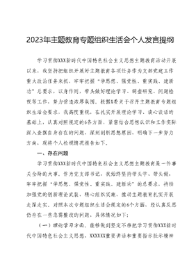 2023年主题教育专题组织生活会个人发言提纲.docx