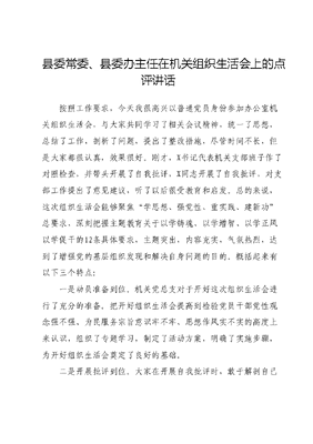 县委常委、县委办主任在机关组织生活会上的点评讲话.docx