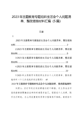 (5篇)2023年主题教育组织生活会个人问题清单、整改措施材料汇编.docx