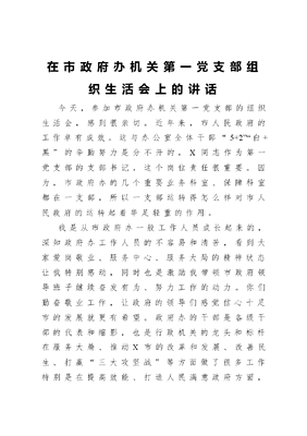 在市政府办机关第一党支部组织生活会上的讲话.docx