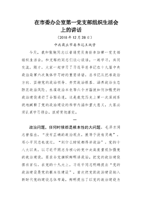 王战营同志在市委办公室第一党支部组织生活会上的讲话.doc