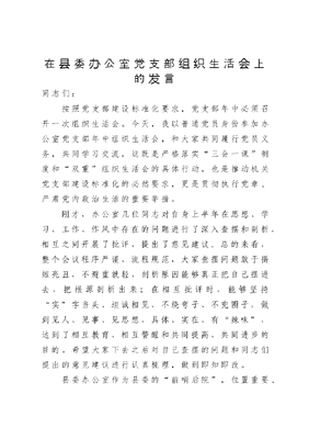 在县委办公室党支部组织生活会上的发言.docx