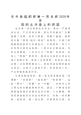 在市委组织部第一党支部2020年度组织生活会上的讲话.docx