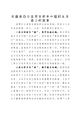 在县委办公室党支部年中组织生活会上的发言.docx