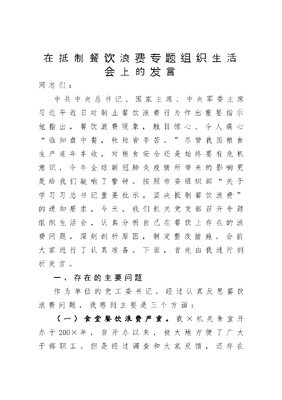在抵制餐饮浪费专题组织生活会上的发言.docx