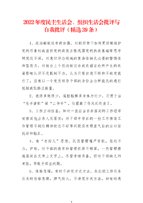 (39条)2022年度民主生活会、组织生活会批评与自我批评.docx