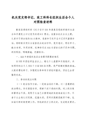 机关党支部书记、政工科科长组织生活会个人对照检查材料.docx