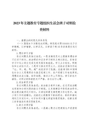 2023年主题教育专题组织生活会班子对照检查材料.docx