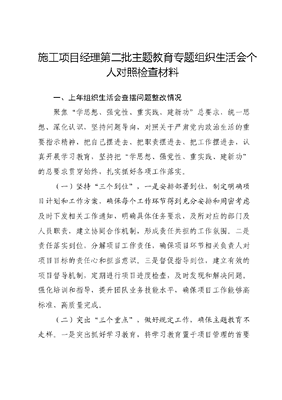 施工项目经理第二批主题教育专题组织生活会个人对照检查材料.docx