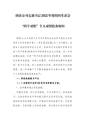 国企公司支部书记2022年度组织生活会“四个对照”个人对照检查材料.docx