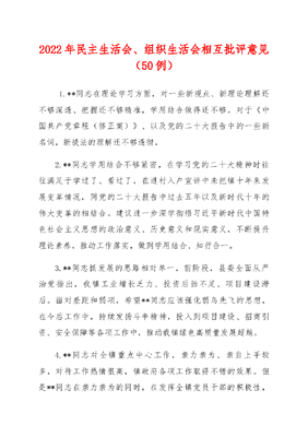 (50例)2022年民主生活会、组织生活会相互批评意见.docx